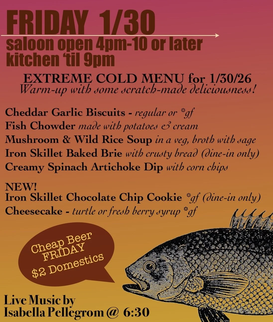 OPEN AT 4PM ON FRIDAY, JAN 30