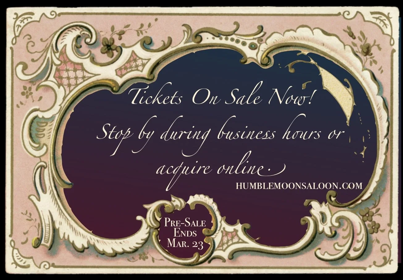 Tickets $25 pre-order/$30 at the door with valid ID. Scroll to bottom of page for ticket request.